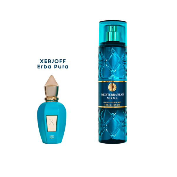 Ce parfum fait partie de la collection « Everyday Luxuries » de Bath & Body Works lancée en 2025, conçue comme une alternative plus abordable aux grandes maisons de parfum. Mediterranean Mirage est l’alternative de XERJOFF Erba Pura.